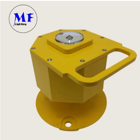 Les feux élevés pour héliport de la série MF-HP-E ne doivent pas dépasser une hauteur de 25 cm pour les héliports au niveau du sol et surélevés, et ne doivent pas dépasser 15 cm de hauteur pour les hélisurfaces. Un raccord fragile est intégré à la base des feux d'héliport, garantissant que si un aéronef heurte accidentellement le feu, la base se brisera instantanément pour éviter d'autres dommages. Ces feux peuvent être utilisés comme feux de FATO (Final Approach and Take-Off), de TLOF (Touchdown and Lift-Off) et de voie de circulation.
